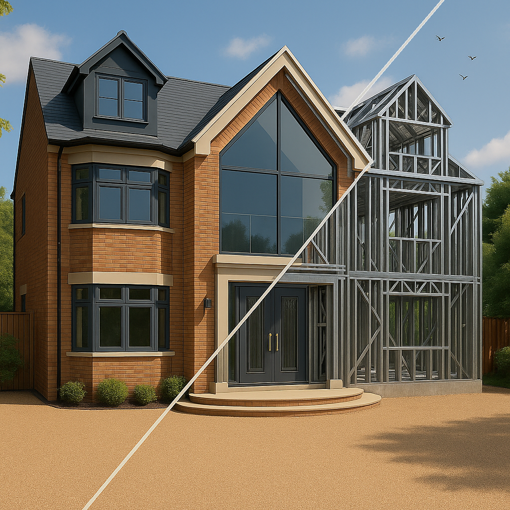 We provide comprehensive support for planning applications, extensions, loft conversions, HMOs, new builds, building regulations, and 3D visuals, as well as dedicated light gauge steel frame design for modern construction projects.